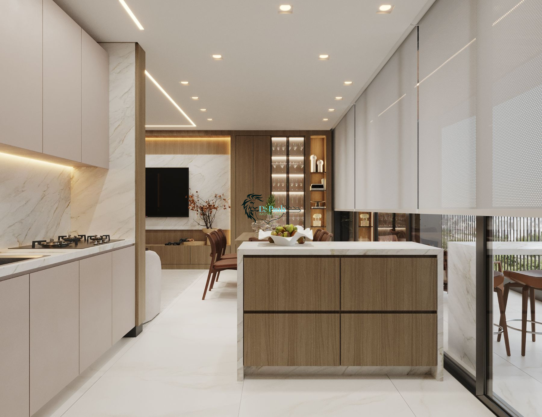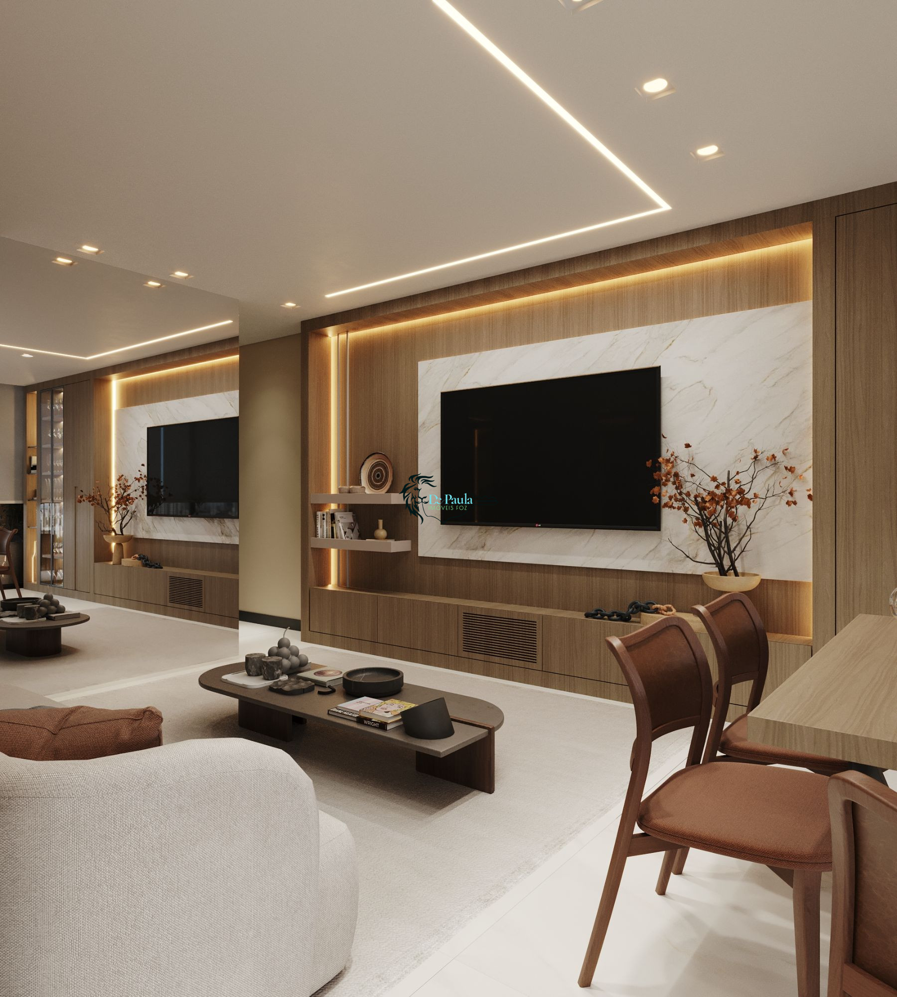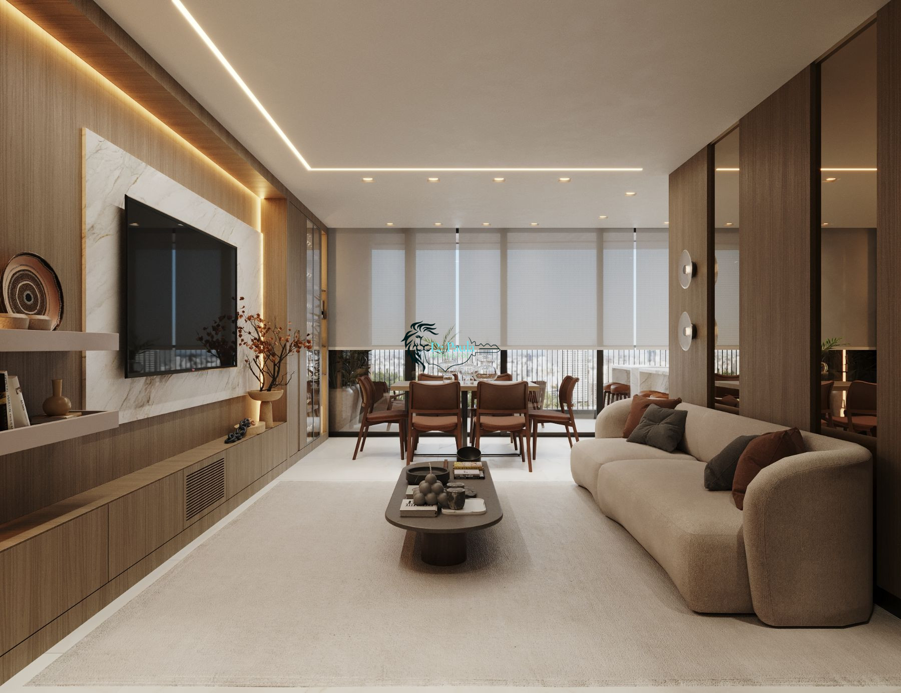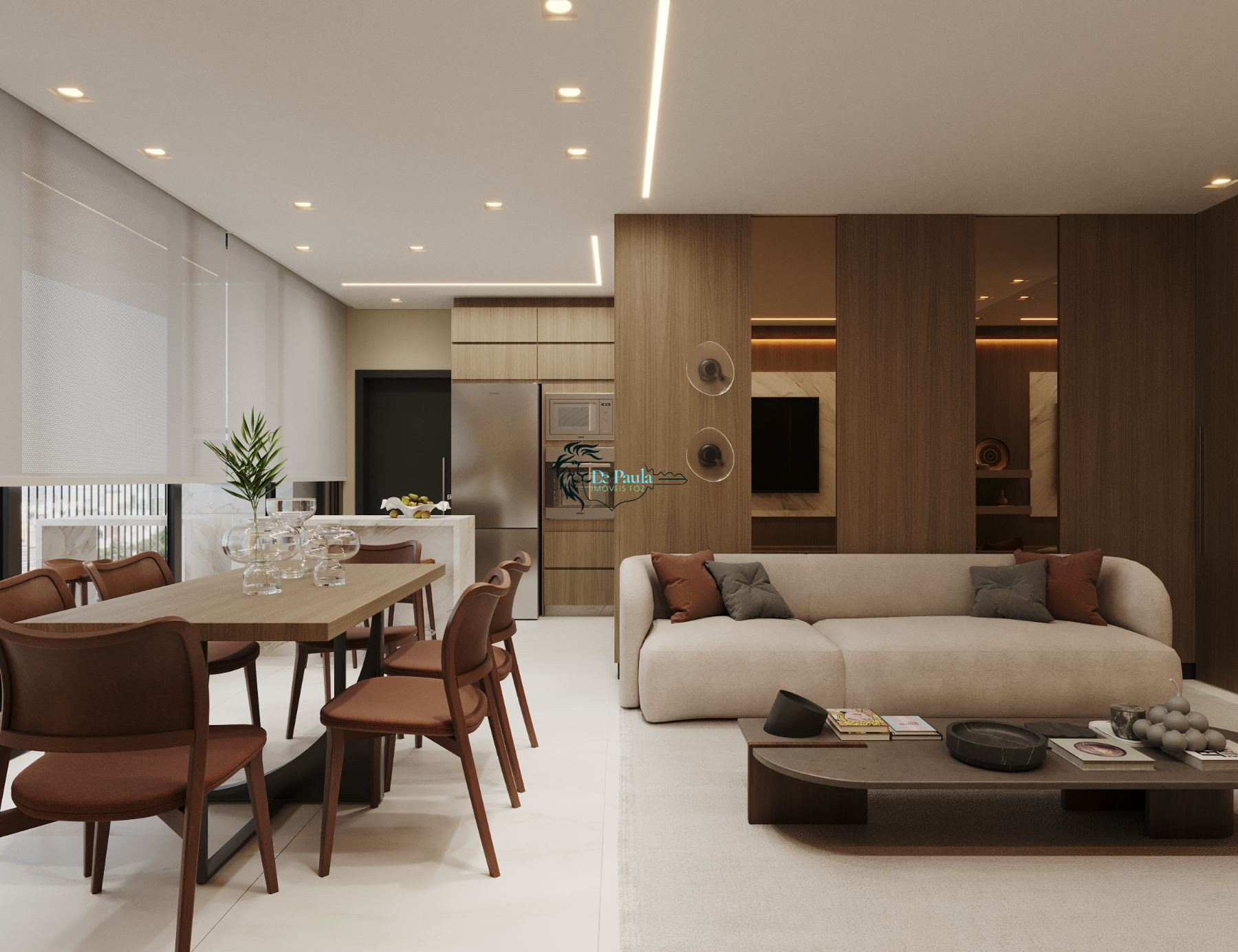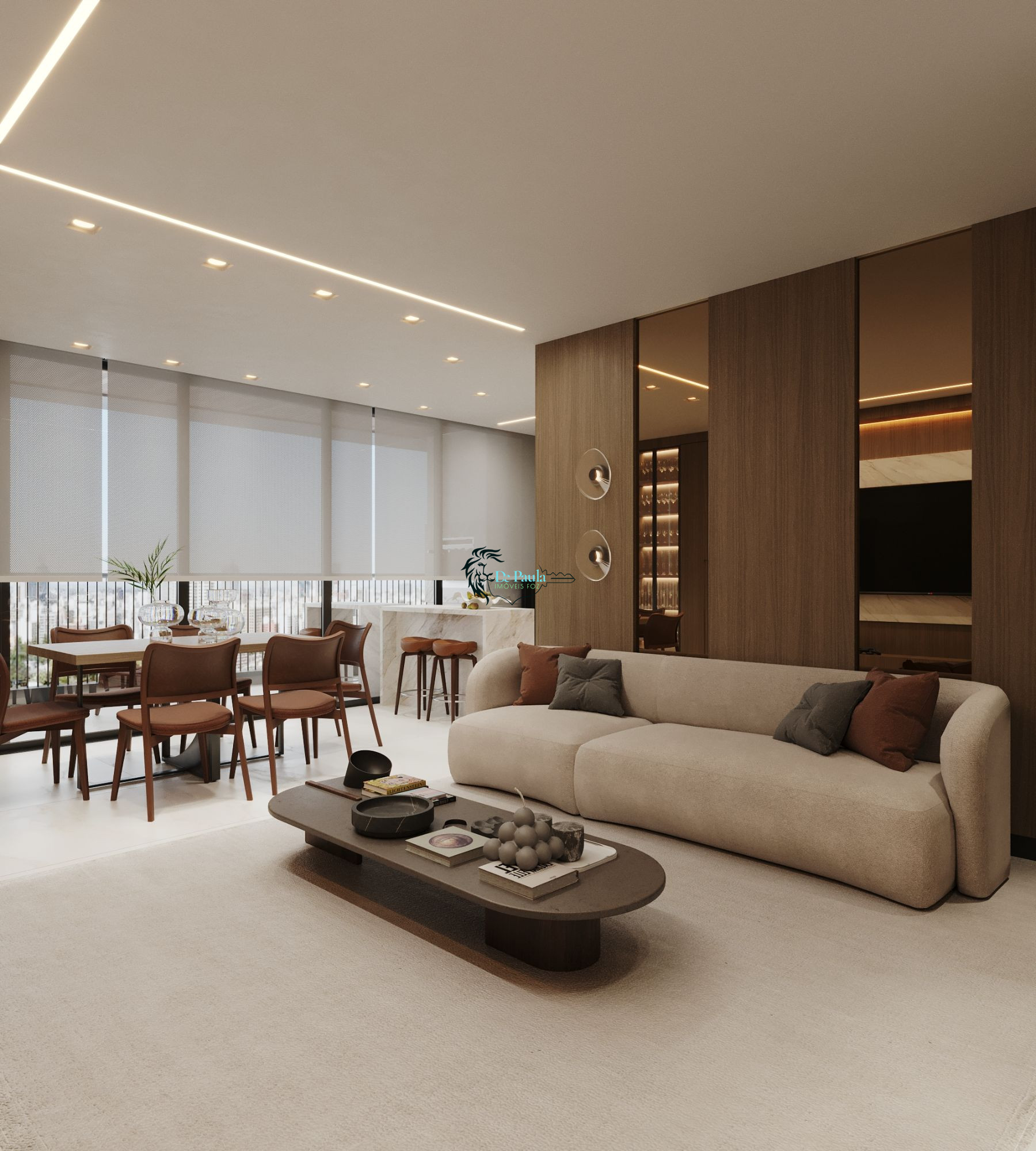 Sala de estar e jantar integradas